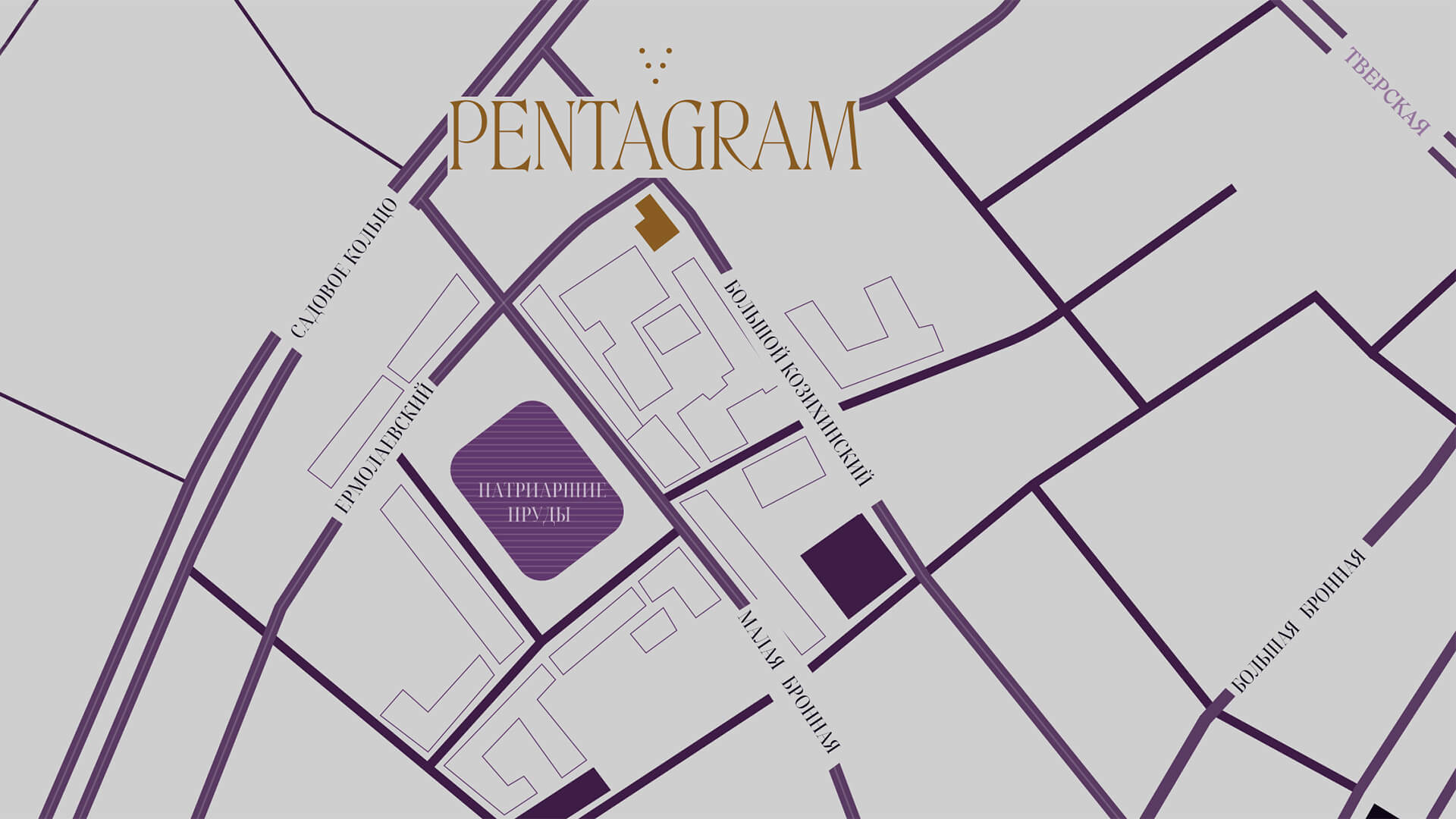 Клубный дом Pentagram находится в одном из самых элитных районов Москвы – на Патриарших прудах. Удачное расположение в Большом Козихинском переулке позволяет наслаждаться тишиной и уютом, оставаясь всего в трёх минутах ходьбы от оживлённого центра района.